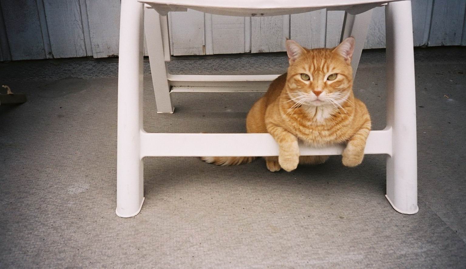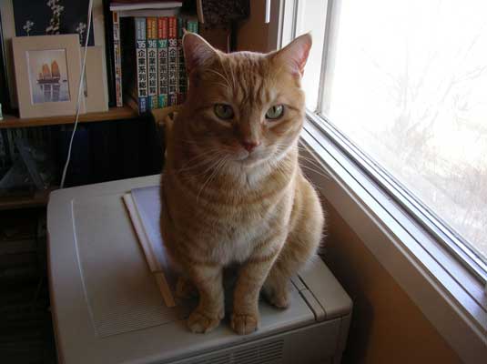 the birds, squirrels and passers-by. This second-floor window gives him a good